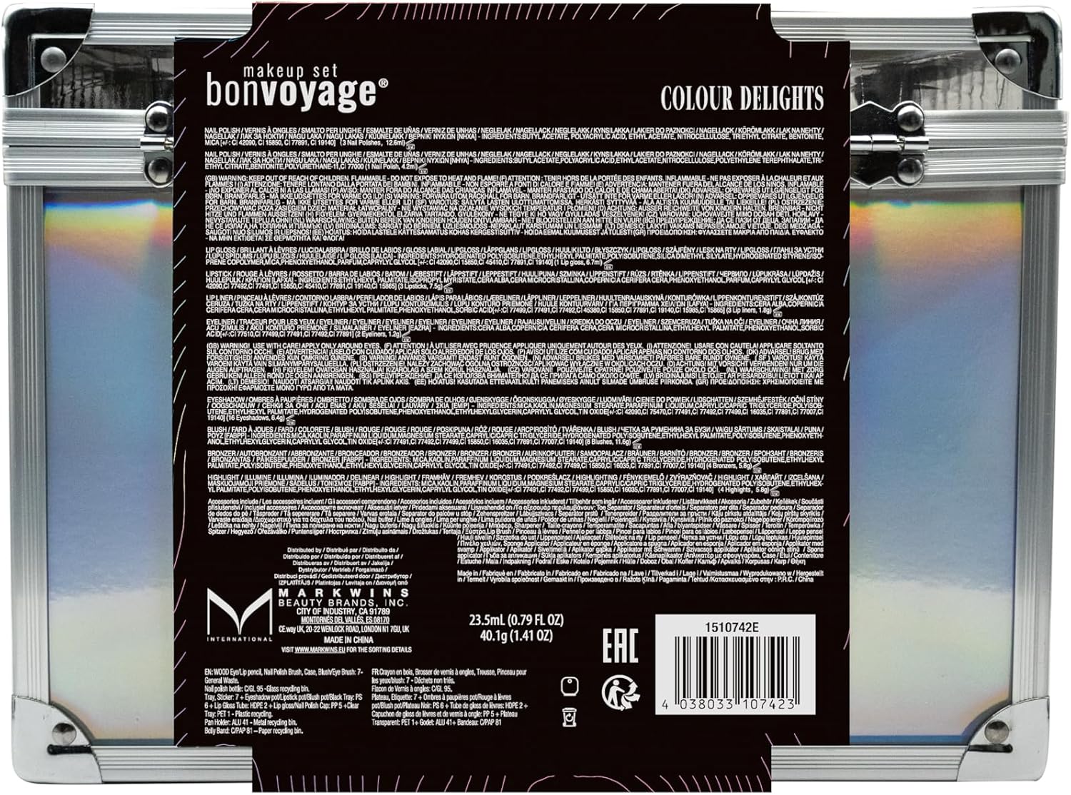 - Make-up kit: The iconic Colour Delights case contains 16 eye shadows, 8 blushes, 4 bronzers, 4 highlighters, 3 lipsticks, 1 gloss, 3 lip pencils, 2 eyeliners, and brushes