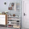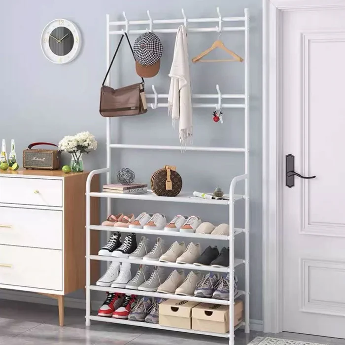 This shoe rack with coat rack is the perfect solution for you. Revolutionize your entryway with this elegant shoe rack with coat rack. Measuring 60×29 cm and 154 cm high, this open piece is available in two sophisticated colors: black and white. Crafted from sturdy iron, its assembly is a breeze. This practical piece is the perfect solution for keeping your entryway tidy and inviting. Your guests can conveniently store their shoes or hang their jackets, ensuring a consistently tidy and welcoming environment. With a modern and functional design, this shoe rack with coat rack is a perfect addition to any entryway.